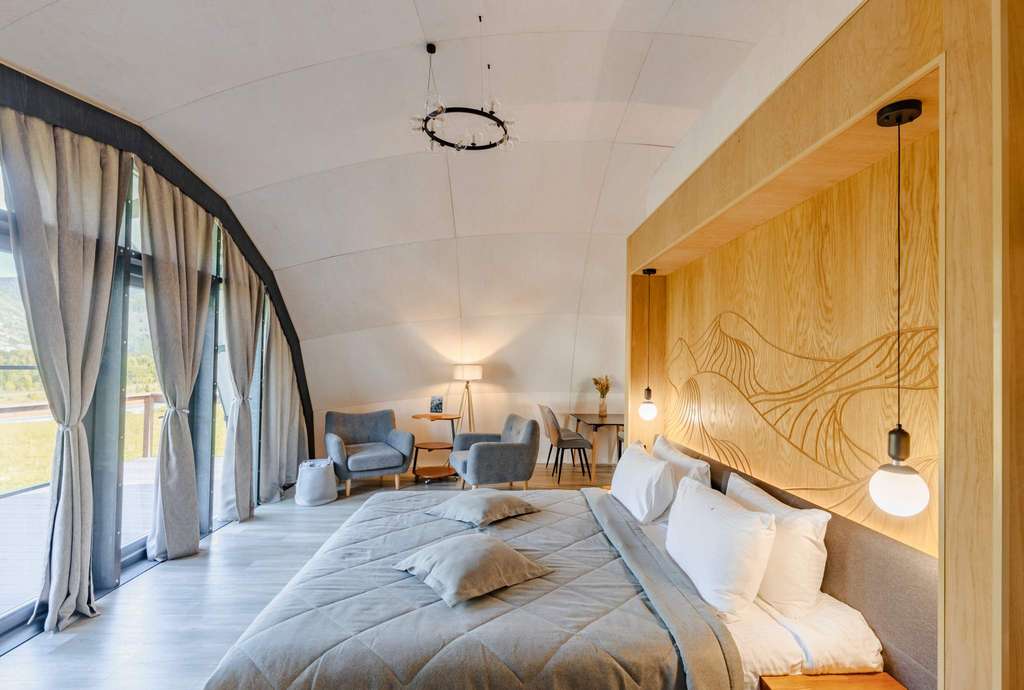 Основополагающей идеей стало создание ощущения воссоединения с первозданной природой, именно поэтому для отеля были построены первые на Алтае футуристичные купольные строения с панорамным видом из каждого номера.