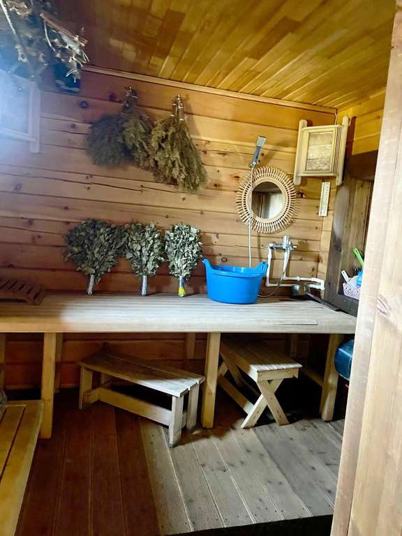 Коммуникации и удобства: 3 санузла, душевые, все полы с подогревом, баня с печью-каменкой и парогенератором, купель с подогревом.